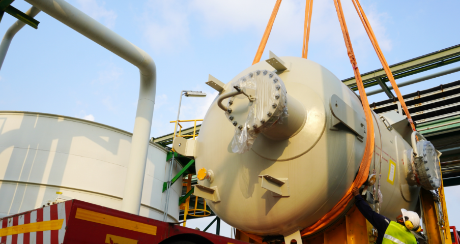 安全確保に配慮した上で、クレーンなどを用いて重量物を正確に設置します。