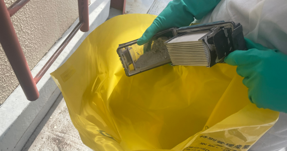 粉じん飛散の抑制に努め、産業廃棄物として適切に処理を行います。